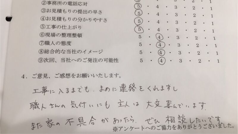 また家の不具合があったらぜひ相談したいです。