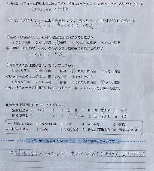 お客様の声 » お客様の声 ウォシュレット交換工事 周南市
