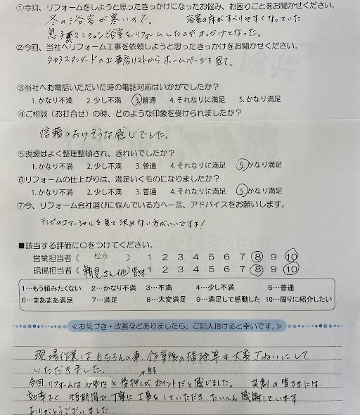 お客様の声 ユニットバス・脱衣所改修工事 下松市。