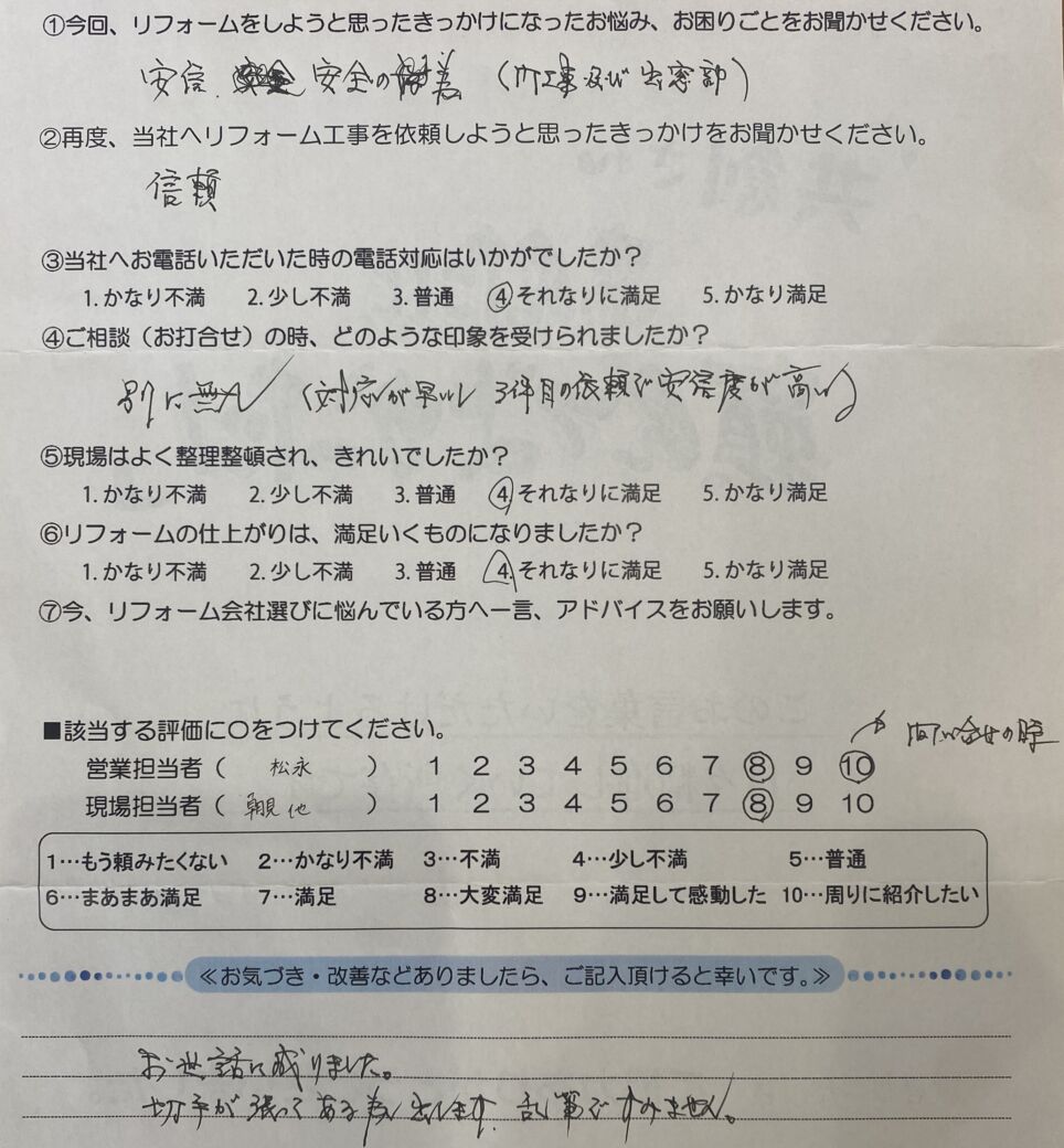 ≪再度、当社へリフォーム工事を依頼しようと思ったきっかけをお聞かせください。≫