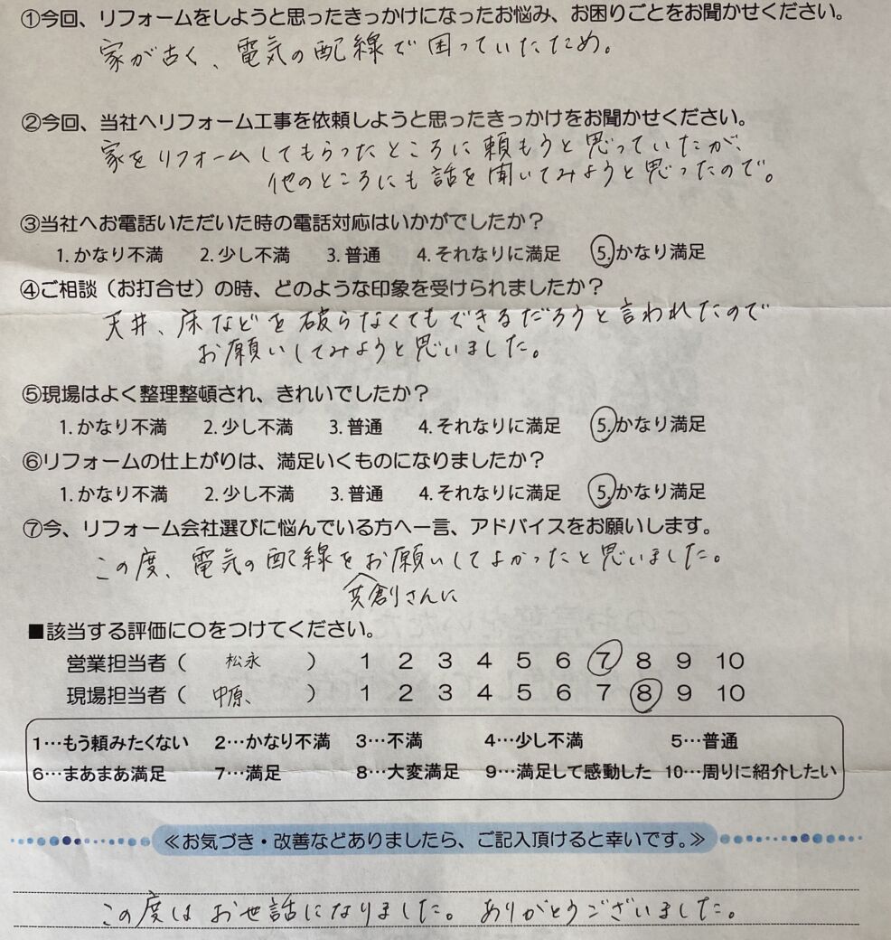 この度、電気の配線を共創さんにお願いしてよかったと思いました。